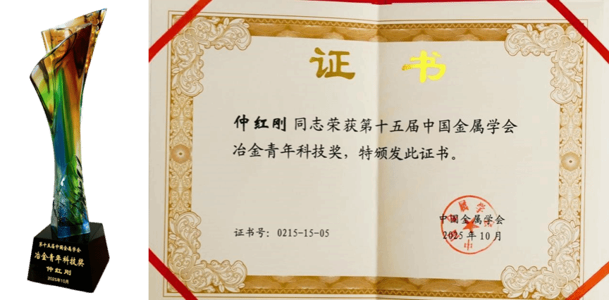先进凝固技术中心(CAST)热模拟技术负责人仲红刚,因其在冶金凝固实验研究领域做出的突出贡献,荣获该奖项。
