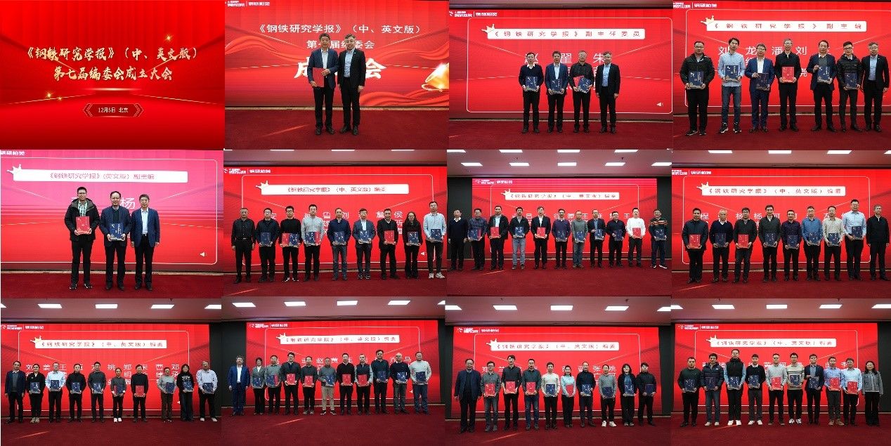 2025年12月5日,《钢铁研究学报》(中、英文版)第七届编委会成立大会在北京隆重举行。中国钢研集团副总经理、两刊主编赵栋梁、钢研总院党委书记总经理梁剑雄莅临会议。我校材料学院翟启杰教授受邀续聘《钢铁研究学报》编委会副主任,杨健教授受聘《钢铁研究学报》英文版副主编,董瀚教授、宋长江教授、鲁晓刚教授等受邀续聘编委会成员。