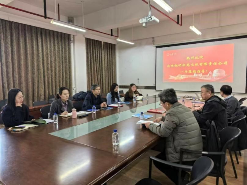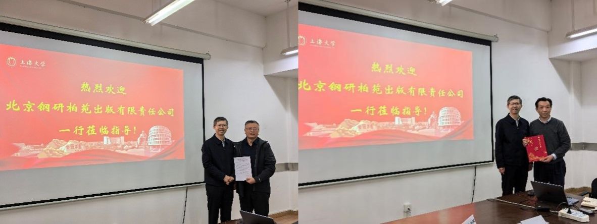 2025年12月11日,钢研总院副院长、钢研柏苑执行董事刘骁携钢研柏苑副总经理高丽平、《钢铁研究学报》编辑部主任、《钢铁研究学报(英文版》编辑部主任副邵燕静、《钢铁》编辑部副主任张梦琪、《中国冶金》编辑部主任何禛、《钢铁研究学报》编辑杨泽宇来访上海大学先进凝固技术中心及《上海金属》编辑部。上海大学先进凝固技术中心主任、《上海金属》主编翟启杰教授等上海大学先进凝固技术中心成员及在上海大学任职的《钢铁研究学报》(中、英文版》、《钢铁》和《中国冶金》编委会成员与来访嘉宾进行了座谈。