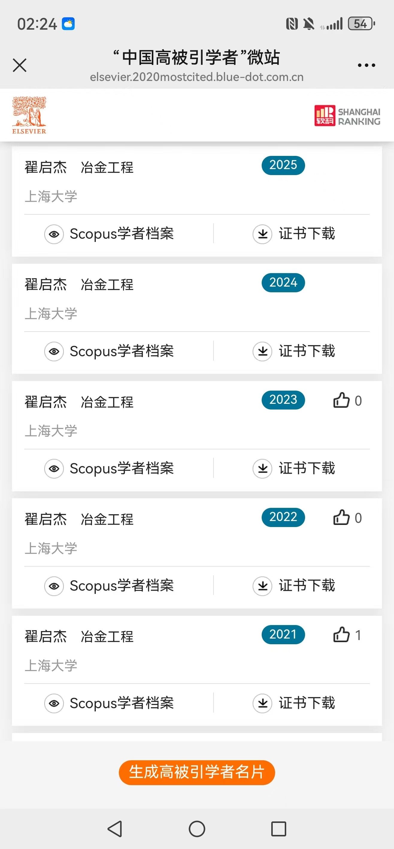 1月29日,爱思唯尔(Elsevier)发布了2025“中国高被引学者(Highly Cited Chinese Researchers)”榜单。我校先进凝固技术中心(简称CAST)主任翟启杰教授继2020年、2021、2022、2023和2024年后,连续第六年入选“冶金工程”专业高被引学者。